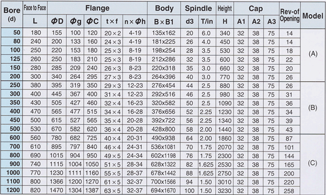 | Dimensions of Sluice Valves / Ductile Cast iron Sluice(Vertical Type) |