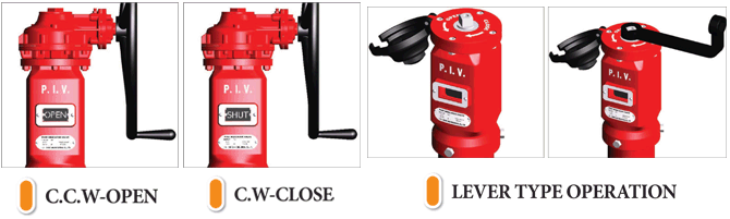 P.I.V´Â Áö»ó¼ÒÈÀüÀÇ ¼Òȼö °ø±Þ ¶óÀο¡ ¼³Ä¡Çϴ ǥ½ÃÇü Á¦¾î¹ëºê·Î½á, Áö»ó¿¡¼ ¹ëºêÀÇ ¿¸²(Open), ´ÝÈû(Close) »óŸ¦ ´«À¸·Î ½±°Ô È®ÀÎÇÒ ¼ö Àִ ǥ½ÃâÀÌ ÀÖ´Ù. Gate Valve´Â NSR(Non-Rising Stem)TypeÀ¸·Î Áß·®À» ÃÖ¼ÒÈ Çϵµ·Ï ¼³°èµÇ¾î ÇöÀå ¼³Ä¡°¡ ½±°í °æÁ¦ÀûÀ̸ç, °³Æó¹æ¹ý¿¡ µû¶ó ±â¾î½Ä°ú ·¹¹Ù½ÄÀÌ ÀÖ´Ù.